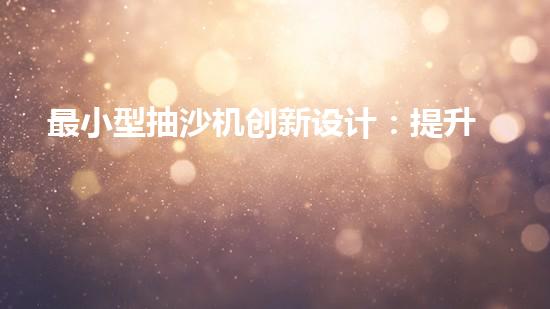 最小型抽沙機創新設計:提升效率的抽沙設備如何改變產業格局?